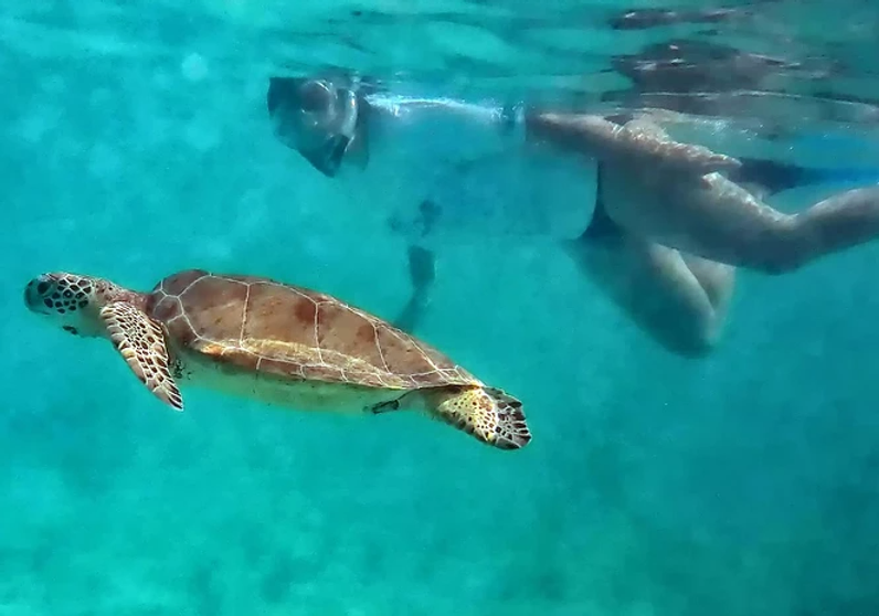 - Always stay horizontal. Know where your fins are at all times. You don’t want to kick up the sand or kick the reef or turtles.